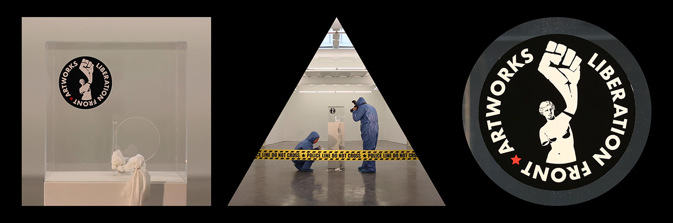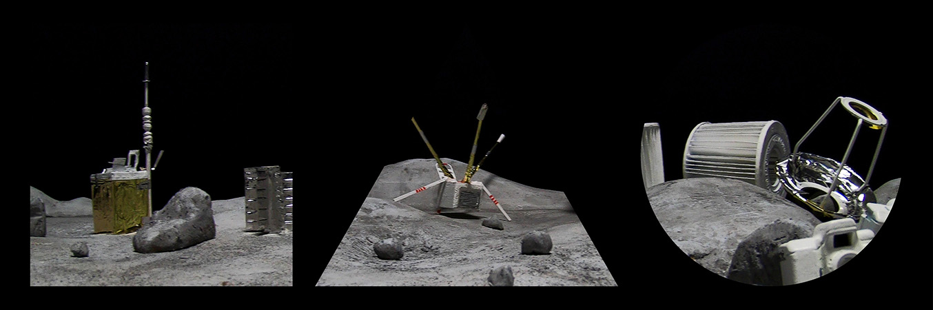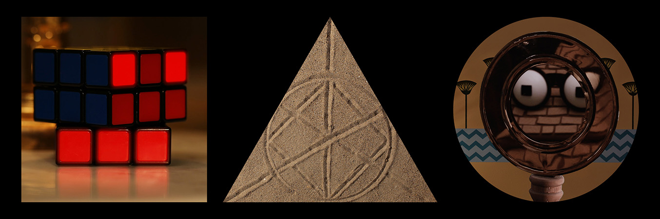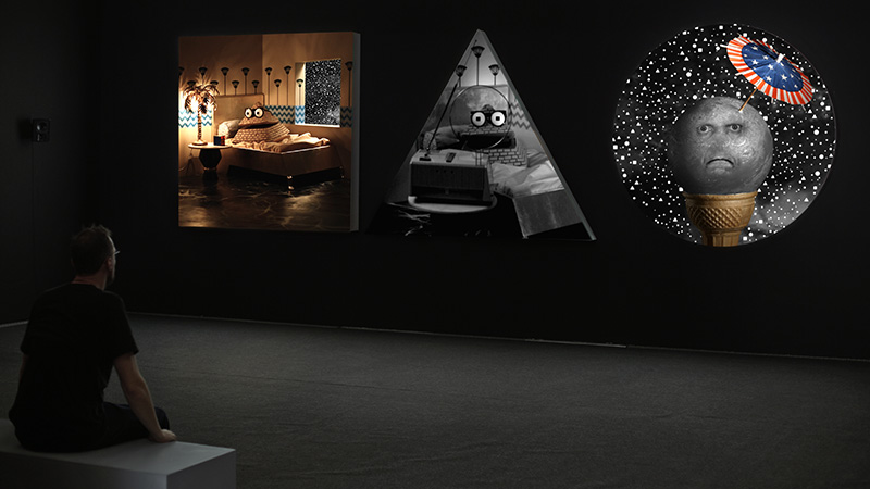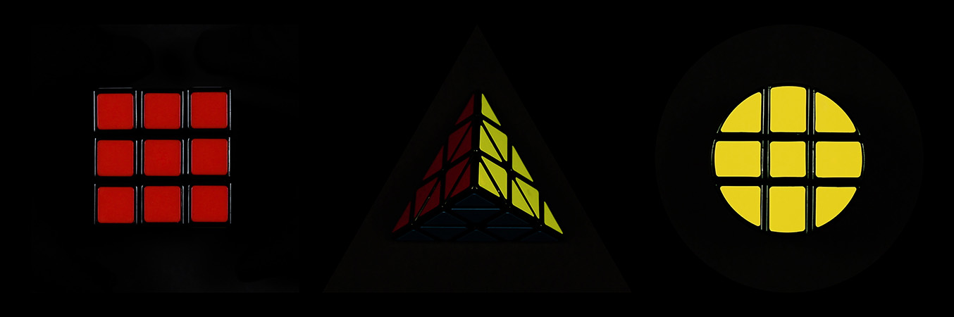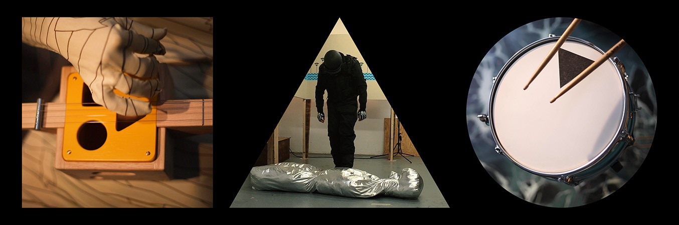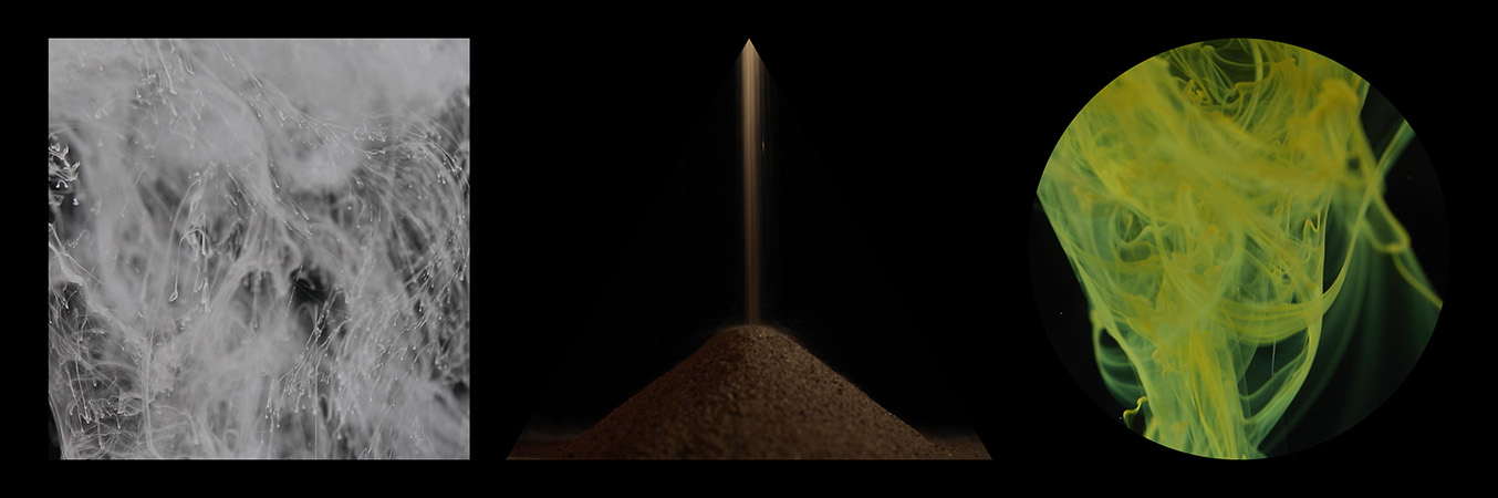 Dispositif vidéo basé sur une triple projection synchronisée, 21'08". Le format de l’image de chacune des vidéos est atypique : un triangle équilatéral, un carré et un cercle. Chaque vidéo est projetée sur un écran réalisé sur mesure selon ces mêmes formes.